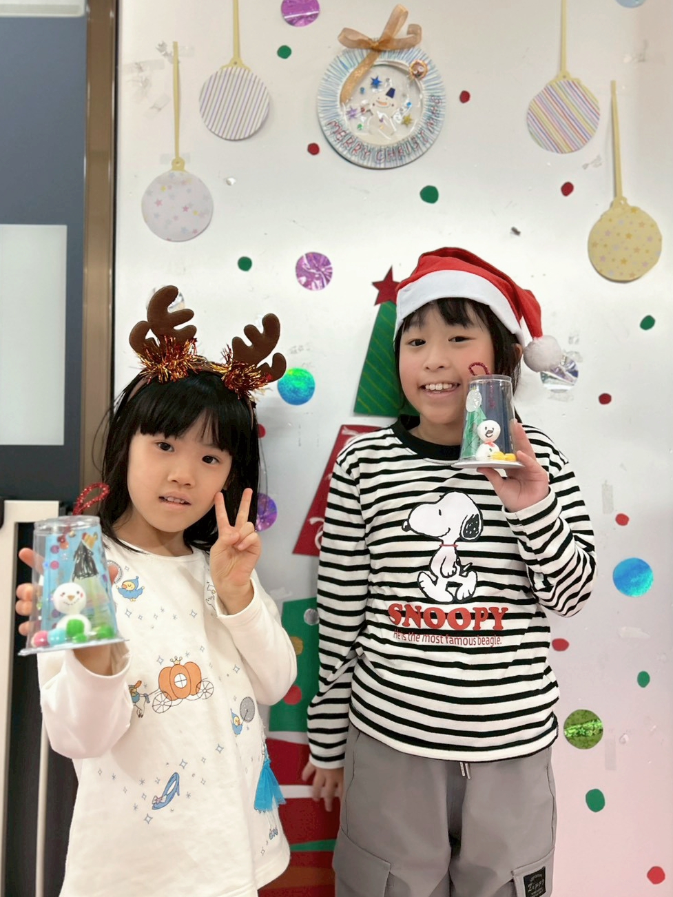 クリスマスツリーや雪だるまにデコレーションをして、オリジナルのスノードームを作りました!